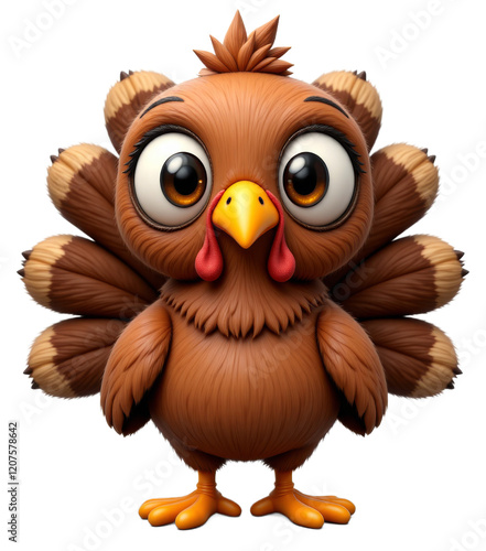 © dreamscapeimages, Fototapeta premium Cartoon turkey with brown feathers, yellow beak and orange feet