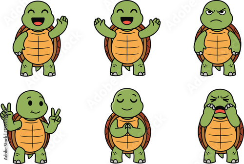 Obraz premium Cartoon turtle character set with emotional expressions and gestures, cute...