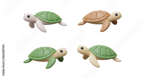 © FINA, Fototapeta premium Cartoon turtle illustrations with varied shell colors on a white background for design or educational use