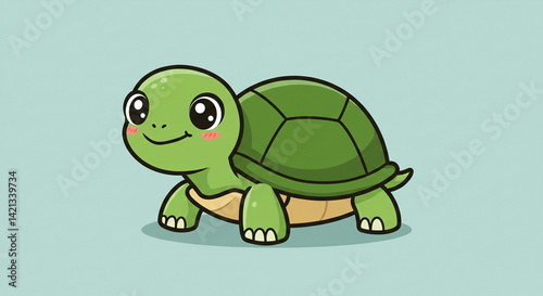 Fototapeta premium Cartoon Turtle Smiling on Light Blue Background, Simple Illustration