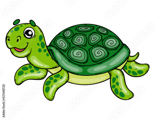 Fototapeta premium Cartoon turtle. Vector illustration of a cute tortoise isolated on white...