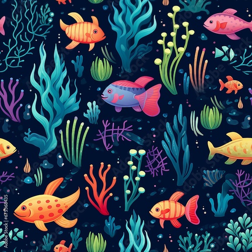Naklejka premium Cartoon Under the Sea Adventure Pattern