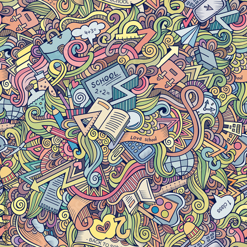 Fototapeta premium Cartoon vector doodles hand drawn school frame