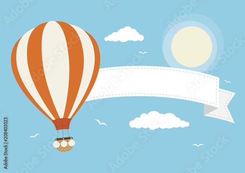 Fototapeta premium Cartoon Vector Hot Air Balloon with Banner