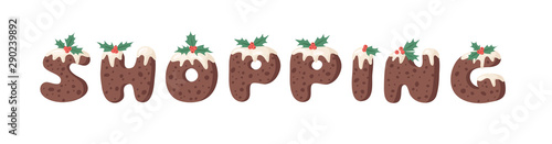© pomolchim, Fototapeta premium Cartoon vector illustration Christmas Pudding. Hand drawn font. Actual Creative Holidays bake alphabet and SHOPPING