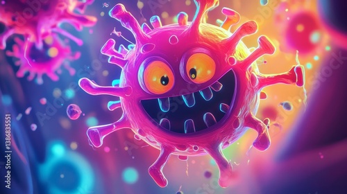 © Murda, Fototapeta premium Cartoon virus illustration with a smiling face and bright colors.