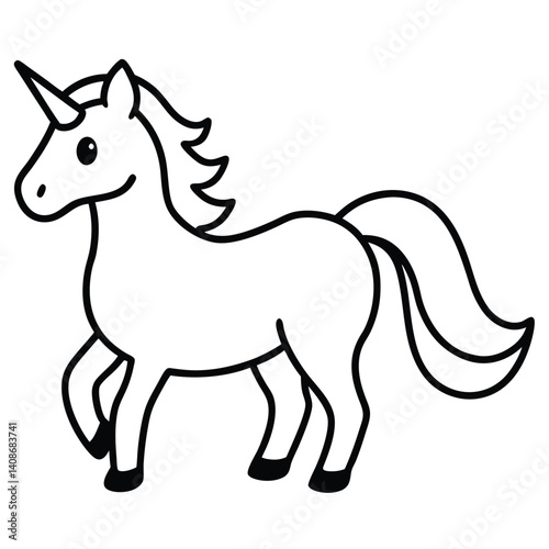 Fototapeta premium Cartoon Walking Unicorn Outline with Horn, Mane, and Tail on a Transparent...
