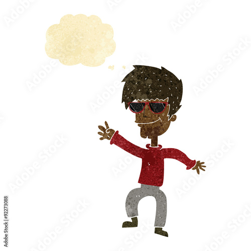 © lineartestpilot, Obraz premium cartoon waving cool guy with thought bubble