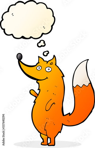 © lineartestpilot, Naklejka premium cartoon waving fox with thought bubble