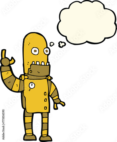 Fototapeta premium cartoon waving gold robot with thought bubble
