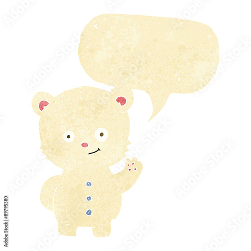 Obraz premium cartoon waving polar bear cub with speech bubble