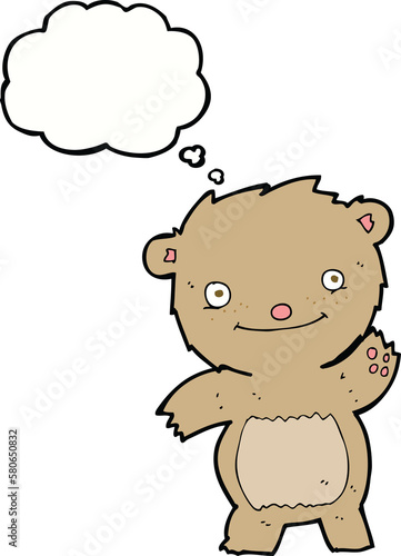© lineartestpilot, Obraz premium cartoon waving teddy bear with thought bubble