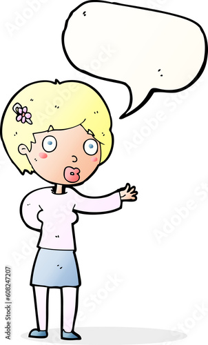 Fototapeta premium cartoon waving woman with speech bubble
