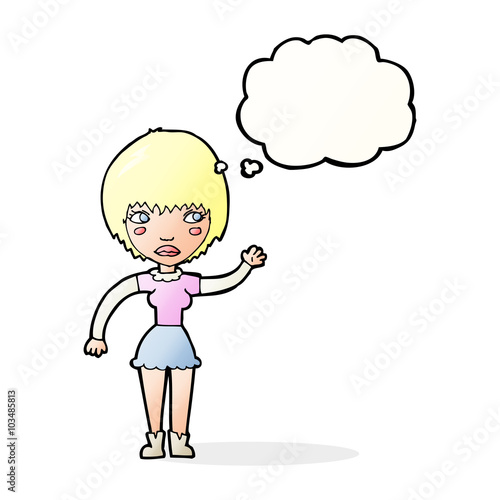 © lineartestpilot, Fototapeta premium cartoon waving woman with thought bubble