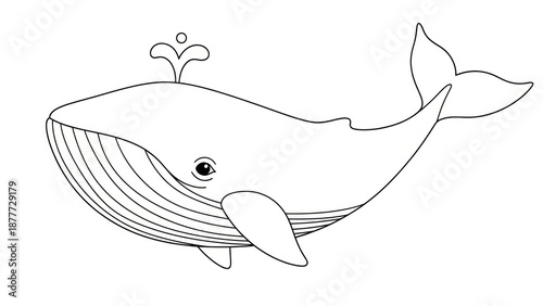 © joo, Fototapeta premium Cartoon whale illustration with water spout simple black and white design