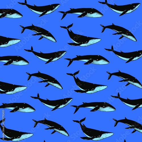 Fototapeta premium Cartoon whale - simple trendy pattern with whalel. Cartoon vector illustration for prints, clothing, packaging and postcards.