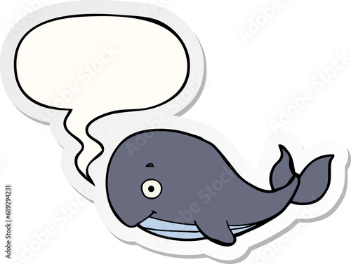 Obraz premium cartoon whale with speech bubble sticker
