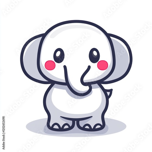 © lestari, Obraz premium Cartoon white elephant with pink cheeks on white background for children's use