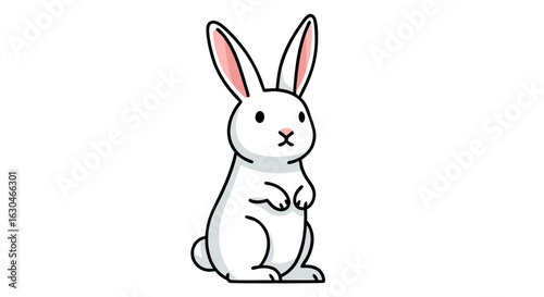 Obraz premium Cartoon White Rabbit Standing Upright with Pink Ears and Cute Expression,...