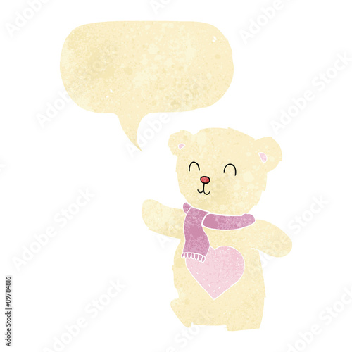 Obraz premium cartoon white teddy bear with love heart with speech bubble