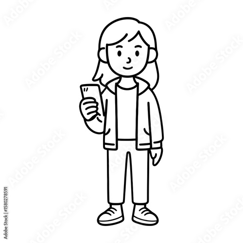 Fototapeta premium Cartoon woman holding smartphone vector