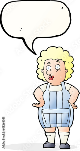 Fototapeta premium cartoon woman in kitchen apron with speech bubble
