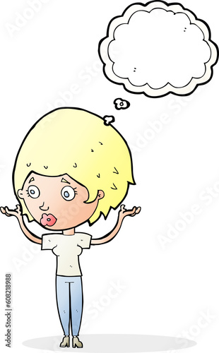 Obraz premium cartoon woman raising hands in air with thought bubble