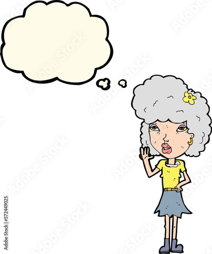 © lineartestpilot, Fototapeta premium cartoon woman waving with thought bubble