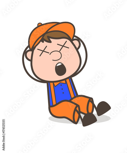 Obraz premium Cartoon Worker Character Dizzy Face Vector