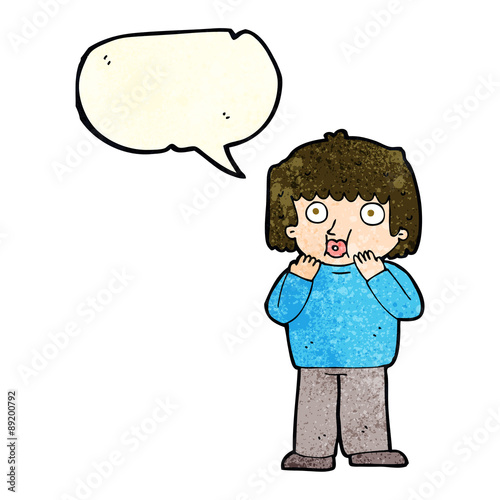 Obraz premium cartoon worried boy with speech bubble