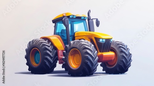 Obraz premium Cartoon yellow tractor with large tires on white background.