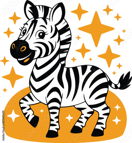 © NusratJahan, Fototapeta premium Cartoon Zebra Jumping with Stars Vector Illustration
