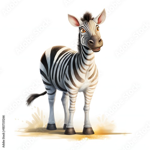 Naklejka premium Cartoon zebra standing in front of a white background looking happy and friendly