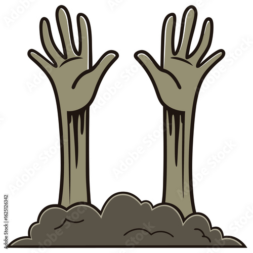© Sabbir, Obraz premium Cartoon Zombie Hands Emerging from the Grave on Halloween Night Scene