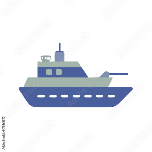 © Sharuzzaman, Obraz premium Cartoonish Blue Military Warship Isolated on Black Background