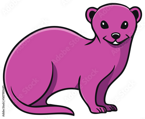 Fototapeta premium Cartoonish bright pink ferret illustration standing with a friendly face