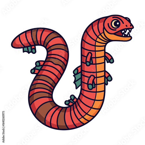 Naklejka premium Cartoonish, stylized illustration of a playful, segmented, red and brown...