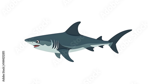 © Ulul Albab LM Putra, Naklejka premium cartoonize Great White Shark side View Isolated on white background