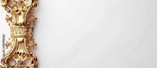 Fototapeta premium Carved gilded frame featuring a king crown set against a white background with empty copy space for text