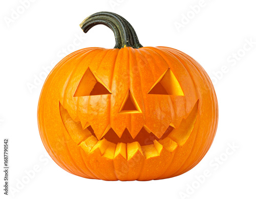 © Cutouts Pro, Fototapeta premium Carved halloween pumpkin isolated on transparent background png