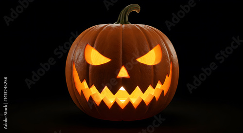Obraz premium Carved pumpkin with internal light, black minimalist background