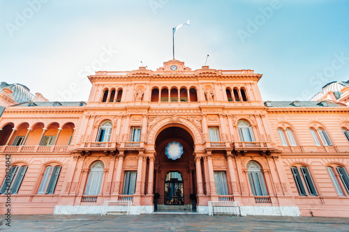 © simonmayer, Fototapeta premium Casa Rosada (Pink House), presidential Palace in Buenos Aires, Argentina, view from the front entrance