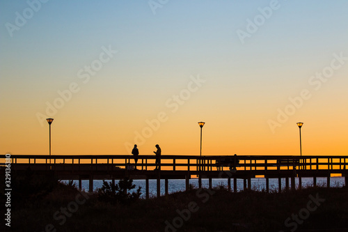 © Erich Sacco, Fototapeta premium casal no deck porto de Punta del Este, Uruguai