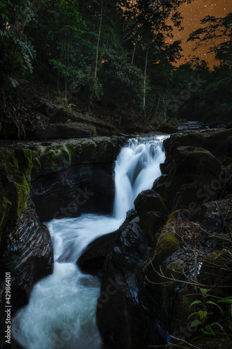 © Héctor, Naklejka premium Cascada capturada en la noche bajo un cielo de un hermoso color