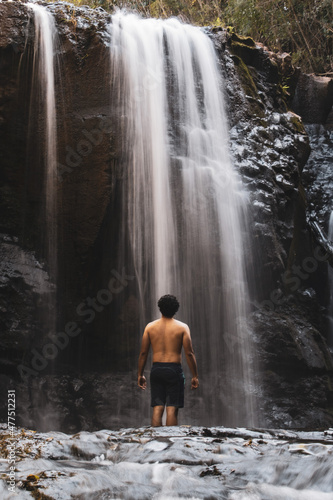 © Danleoparra, Obraz premium Cascada con hombre de espaldas
