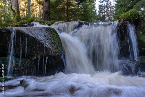 © Hanna, Fototapeta premium Cascade falls over mossy rocks