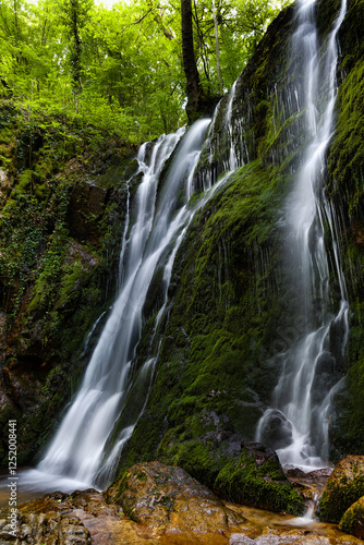 Naklejka premium Cascades of Koleshino Falls in Belasica Mountains, Novo Selo, Republic of North Macedonia. The size of the waterfall is 15 meters