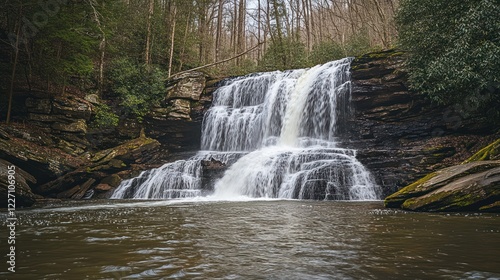 Fototapeta premium Cascading waterfall in forest, spring, nature, tranquil scene, travel