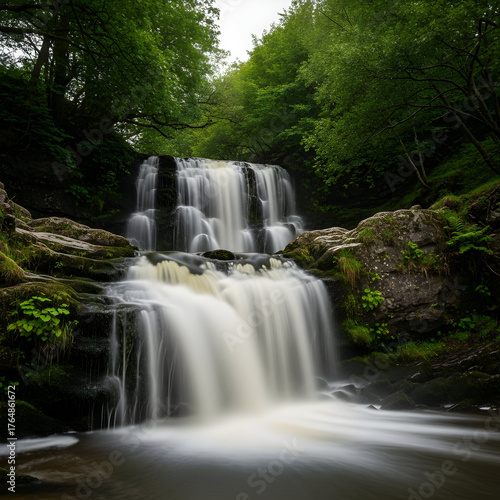 © Mdndm, Obraz premium Cascading Waterfall Scene Nature