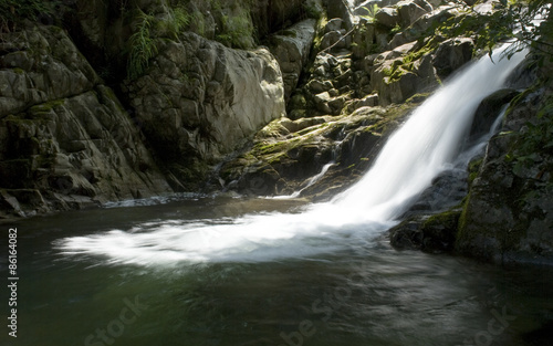 © balenabianca, Fototapeta premium cascatella che si getta in un laghetto lungo il torrente alpino.